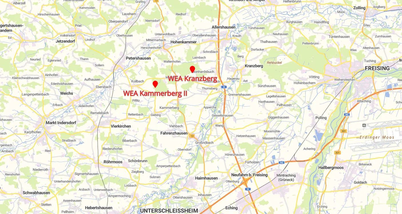 In den Gemeinden Fahrenzhausen und Kranzberg werden zwei Windkraftanlagen vom Typ Enercon E-175 EP5 E2 errichtet.