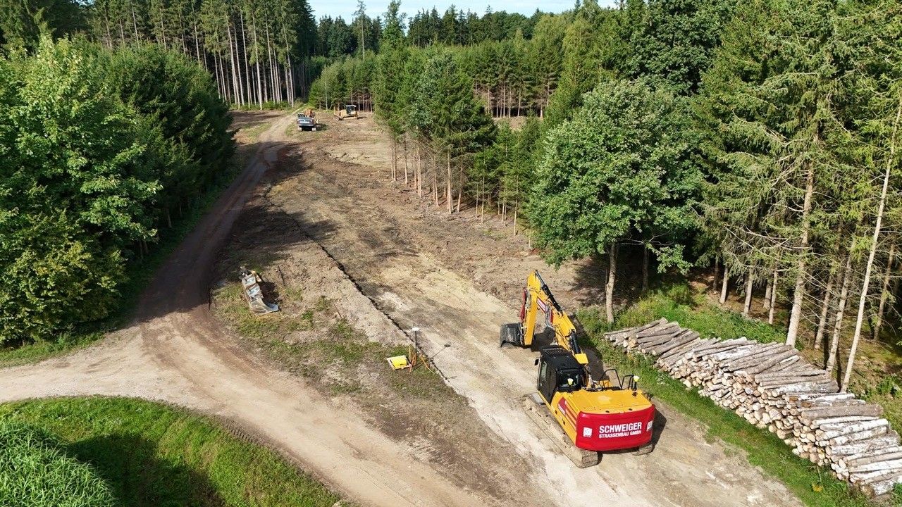 Parallel dazu dass die bestehenden Wege mit einer zusätzlichen Schotterschicht ertüchtigt wurden, wird eine neue Zuwegung zu den Standorten angelegt. Bei der Auswahl der Baustoffe hat man sich, trotz erheblicher Mehrkosten, bewusst für natürliche Baumaterialien entschieden.