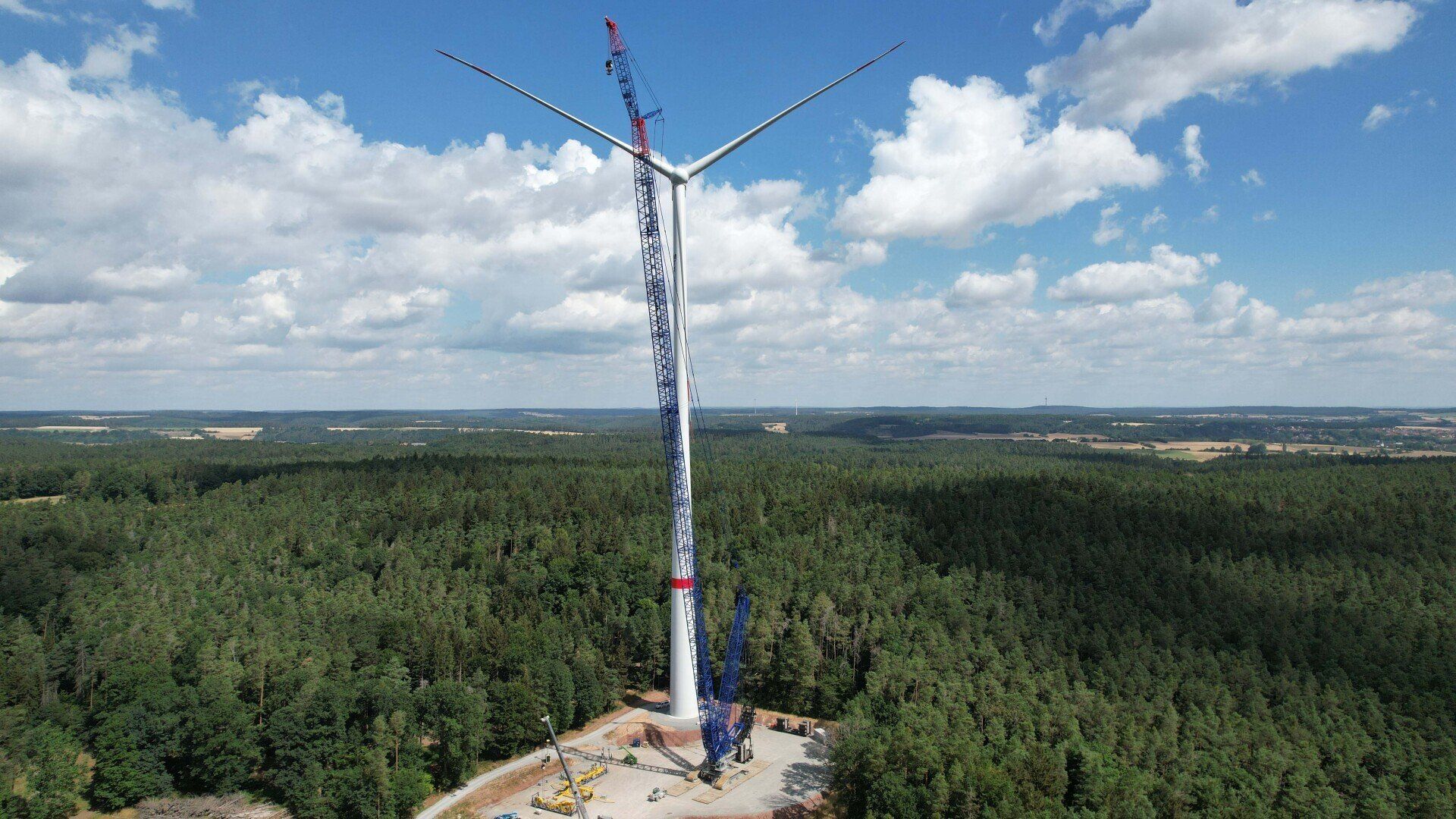 Nordöstlich von Markt Taschendorf wurden zwei weiter WIndkraftanlagen vom Typ Vestas V 162 errichtet. Nach der erfolgreichen Realisierung des Bürgerwindparks Markt Taschendor I im Jahr 2015, wird nun hiermit die Energiewende weiter vorangetrieben.